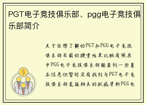 PGT电子竞技俱乐部、pgg电子竞技俱乐部简介